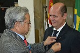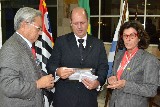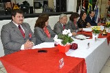 O novo companheiro Nauro Luiz Masotti, ladeado por Edite, sua esposa, foram empossados pelo padrinho José Rodrigues, que ao lado do governador e do presidente brilhante, receberam o casal de maneira acolhedora e com muito entusiasmo.