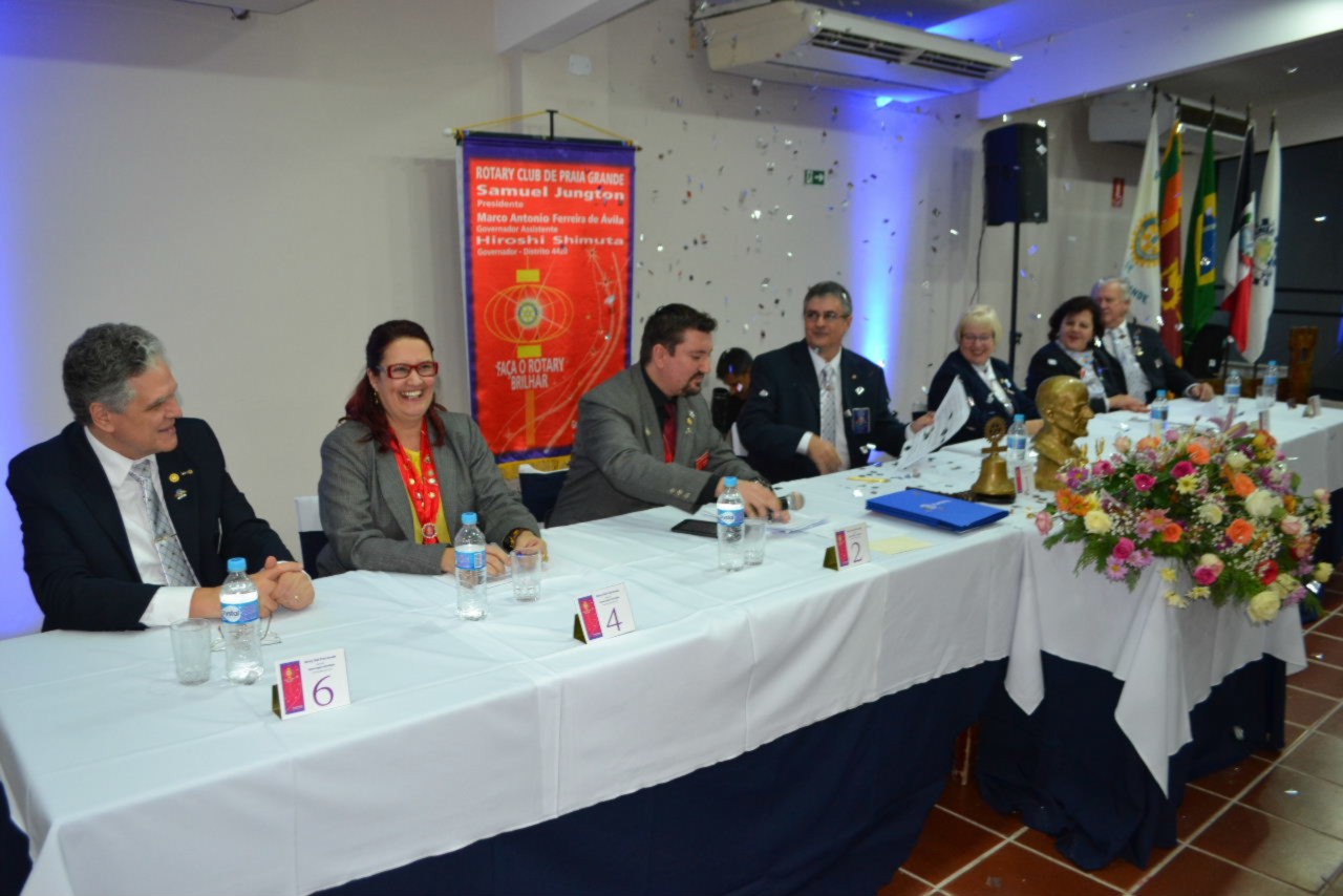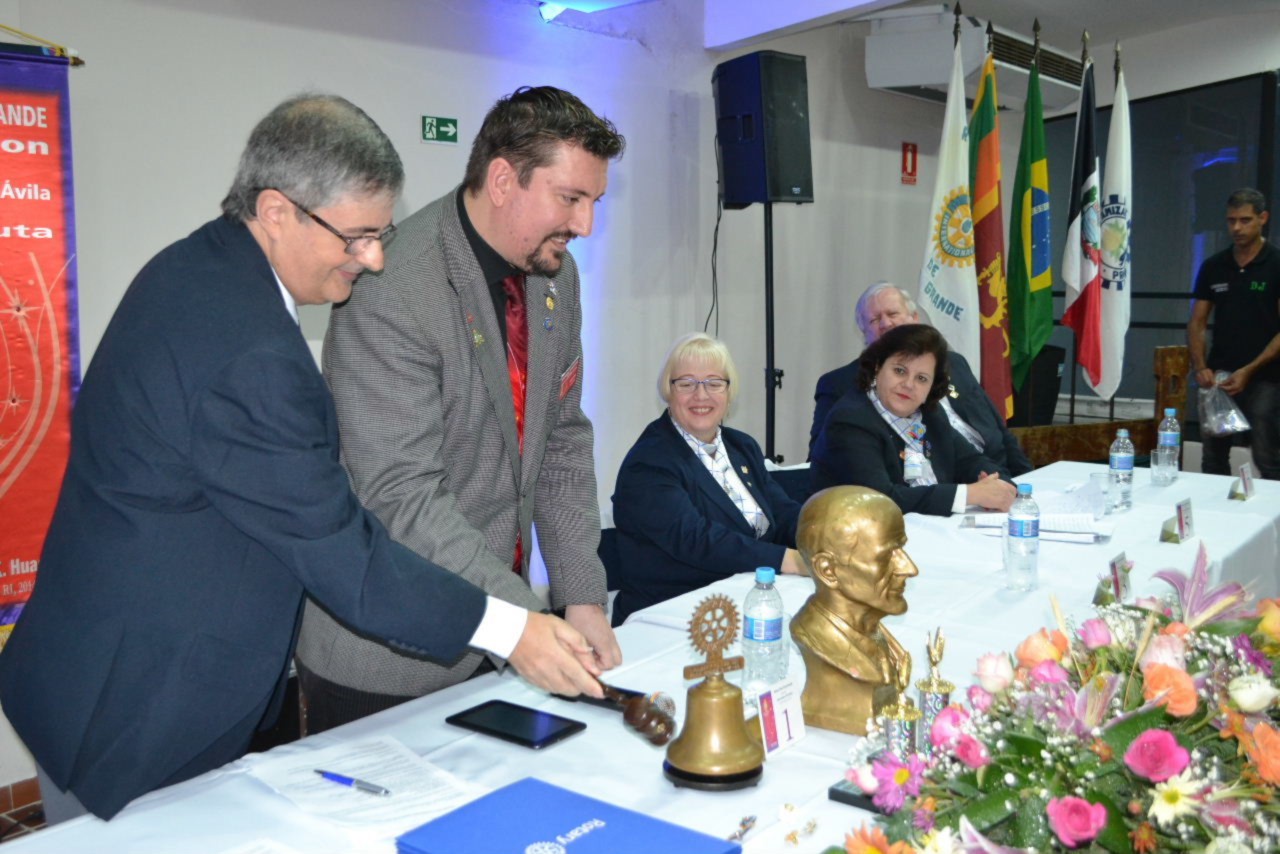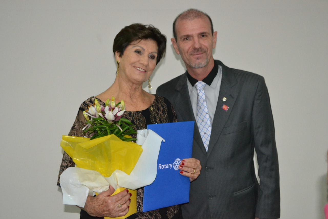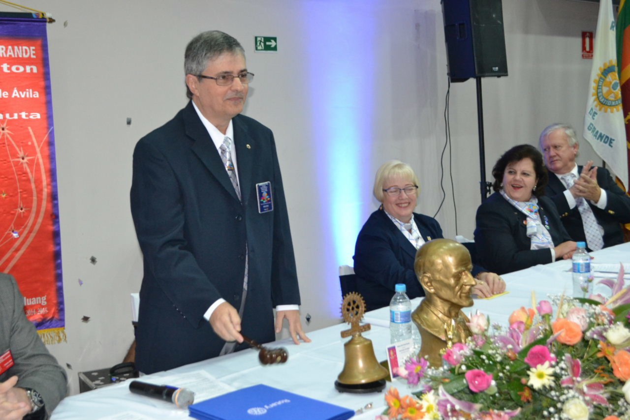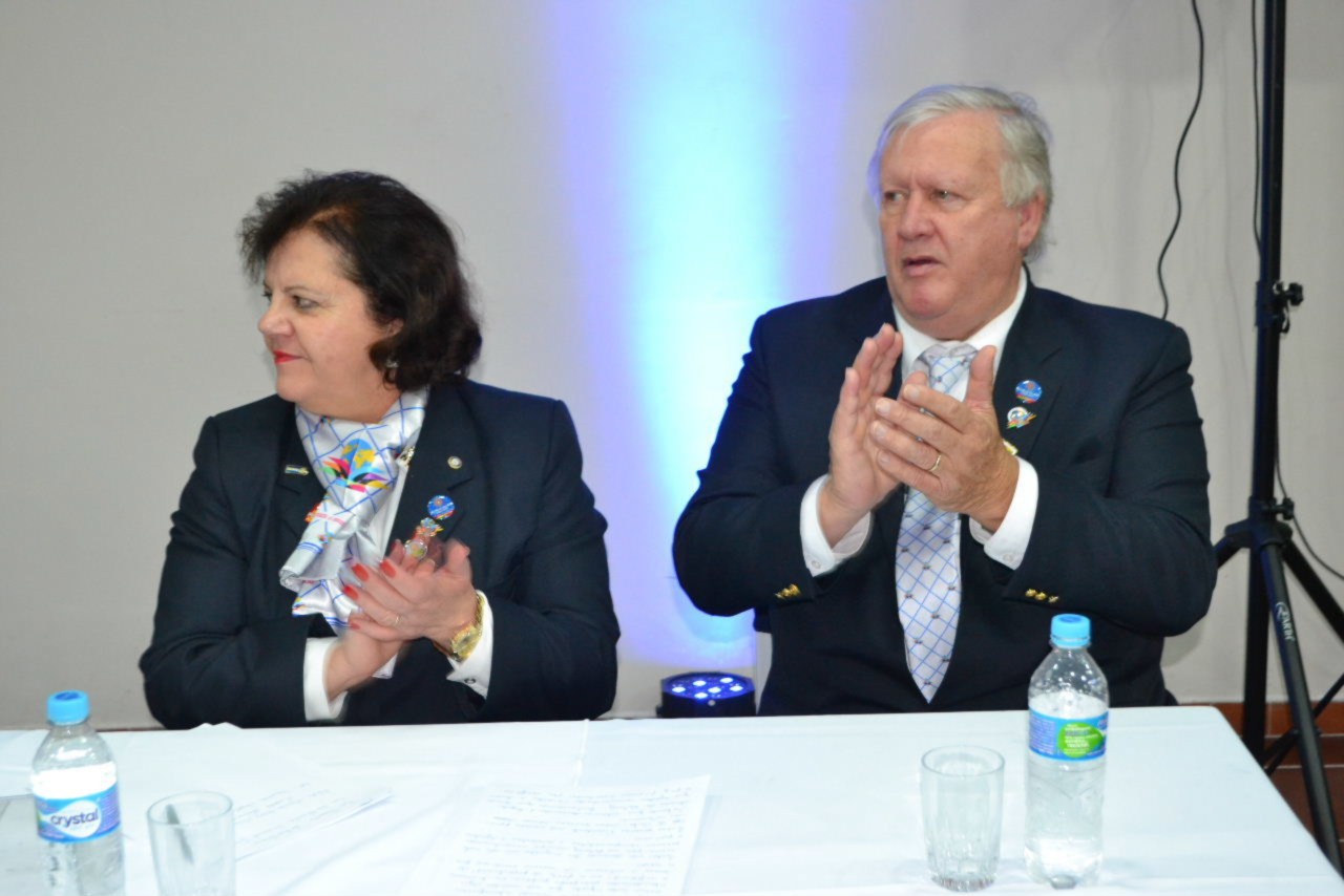 Ao estimado casal, no momento que festejamos sua posse,tenho a honra de transmitir a todos as mais efusivas congratulações. Ao participarmos da sua alegria encontramos motivos muito fortes para acreditar que poderemos com muito trabalho e determinação, ajudar a construir um mundo mais ético e fraterno, com menos indiferenças e injustiças. Isso é possível, porque integramos essa grande família de homens e mulheres rotarianos.
