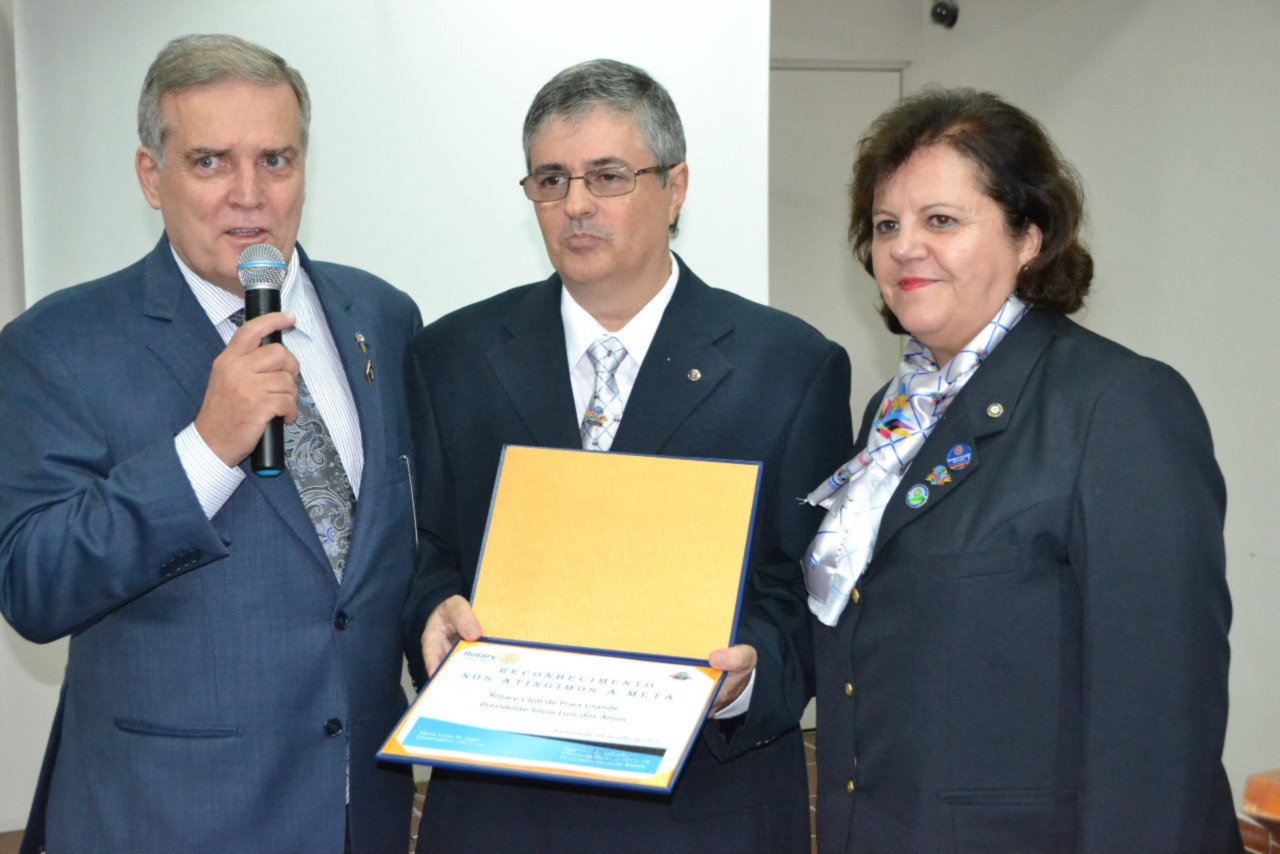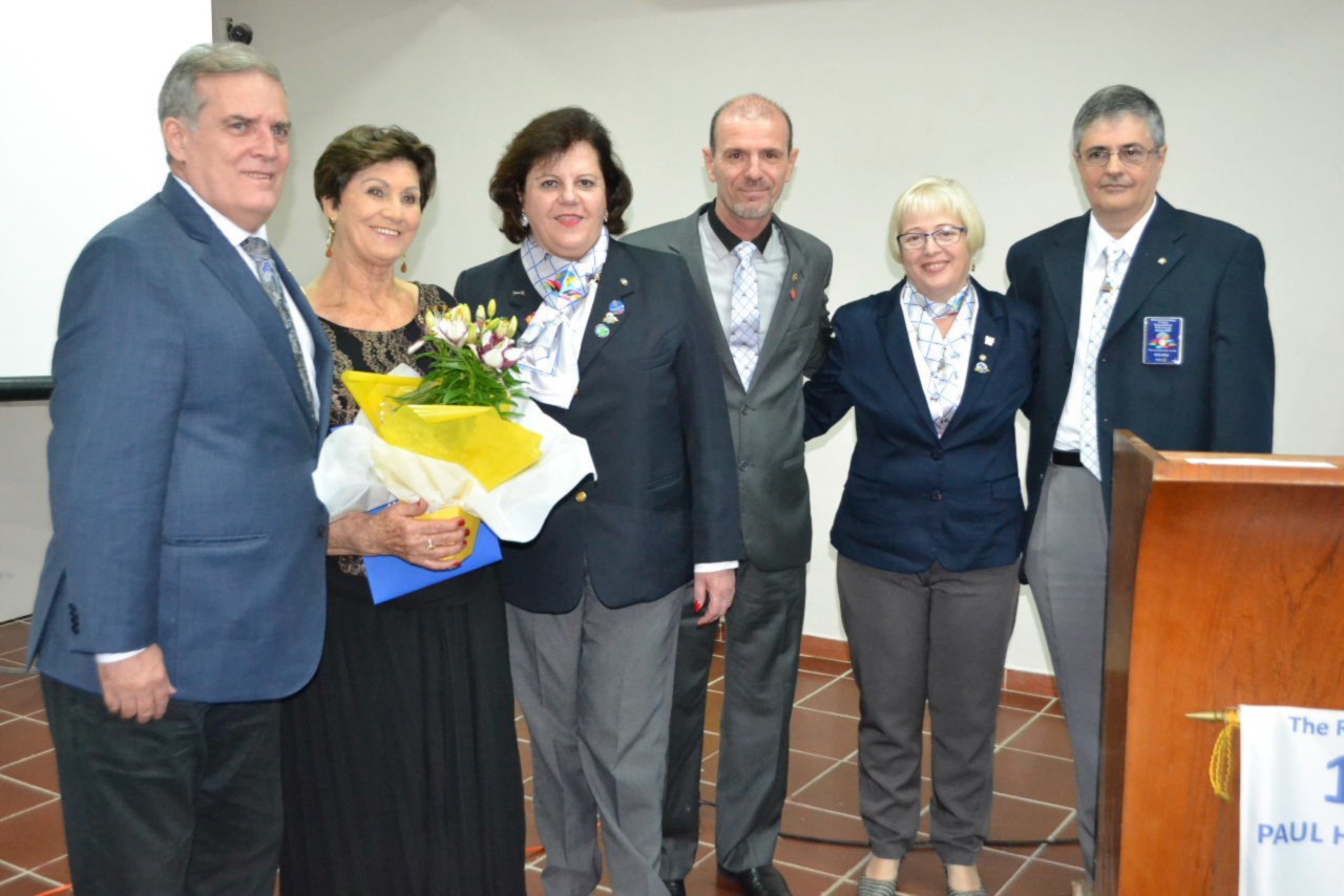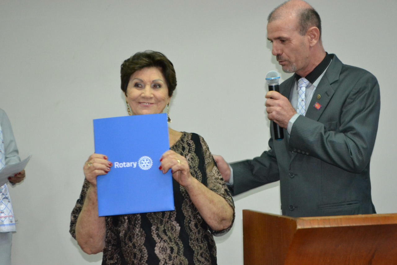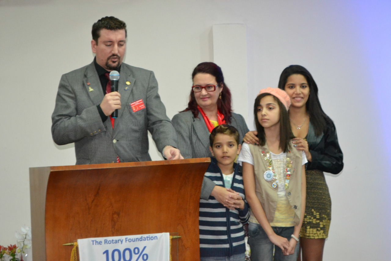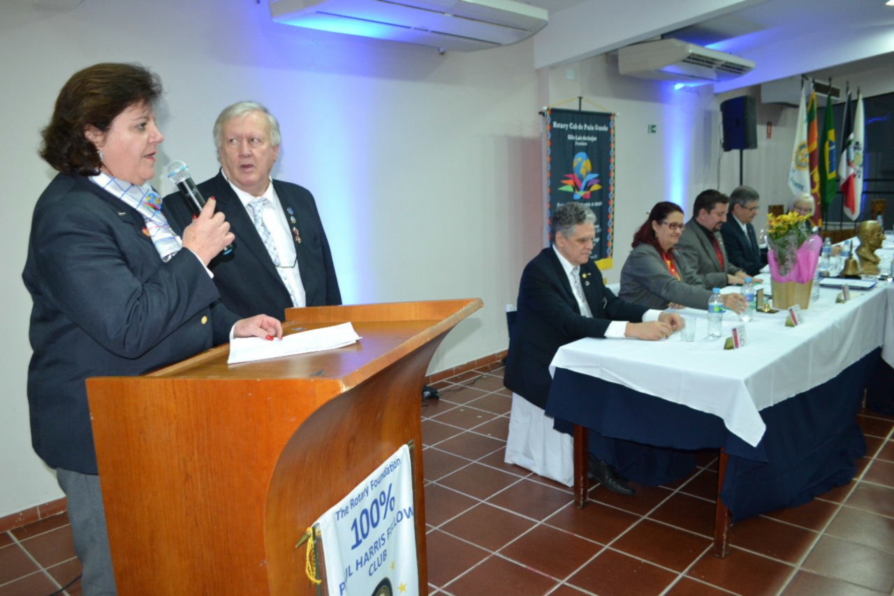Ao estimado casal, no momento que festejamos sua posse,tenho a honra de transmitir a todos as mais efusivas congratulações. Ao participarmos da sua alegria encontramos motivos muito fortes para acreditar que poderemos com muito trabalho e determinação, ajudar a construir um mundo mais ético e fraterno, com menos indiferenças e injustiças. Isso é possível, porque integramos essa grande família de homens e mulheres rotarianos.