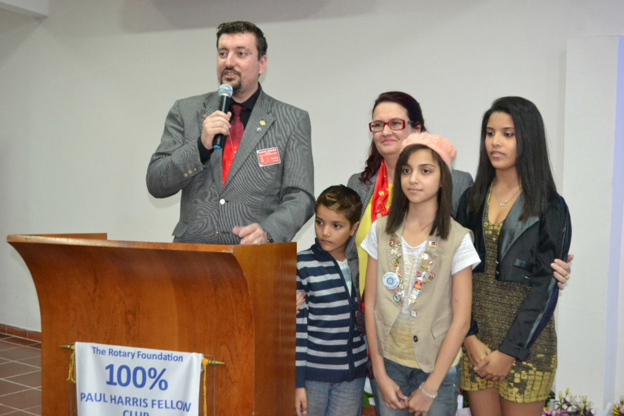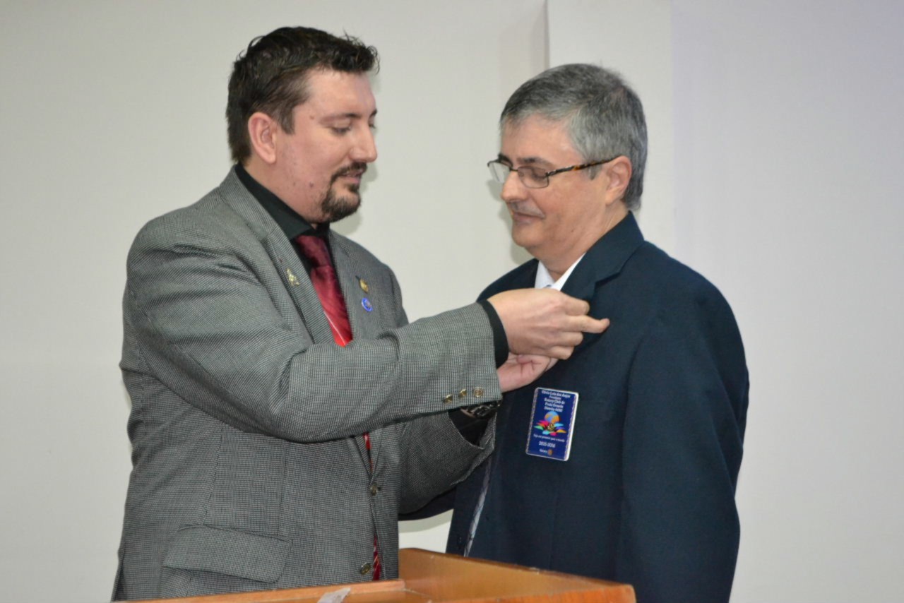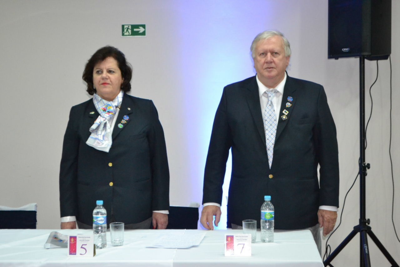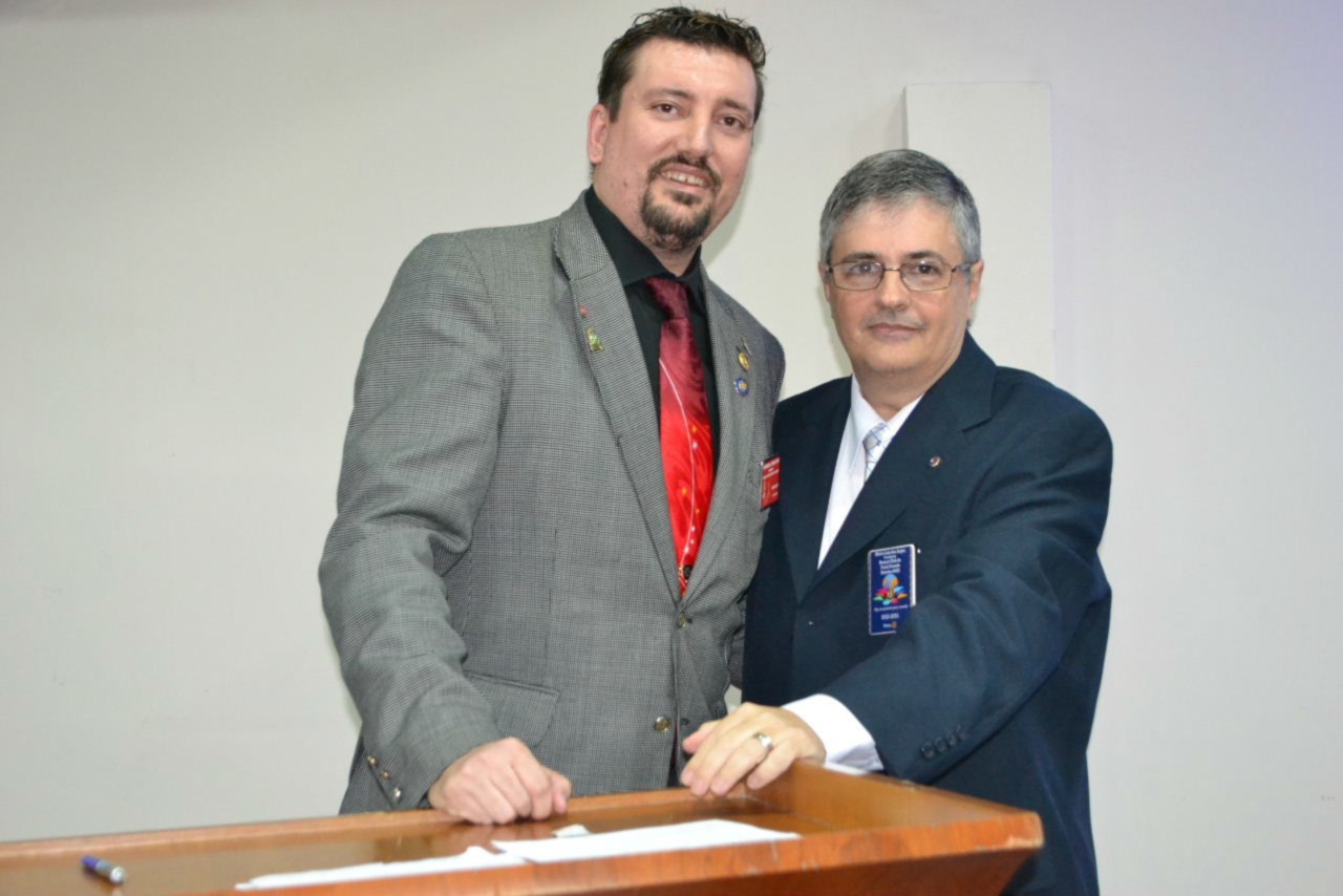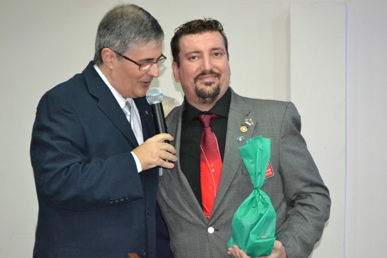 Ao estimado casal, no momento que festejamos sua posse,tenho a honra de transmitir a todos as mais efusivas congratulações. Ao participarmos da sua alegria encontramos motivos muito fortes para acreditar que poderemos com muito trabalho e determinação, ajudar a construir um mundo mais ético e fraterno, com menos indiferenças e injustiças. Isso é possível, porque integramos essa grande família de homens e mulheres rotarianos.
