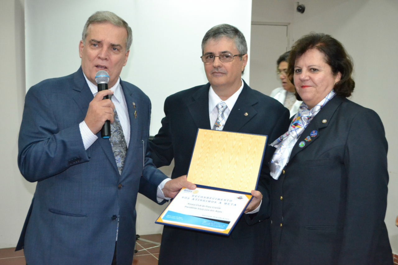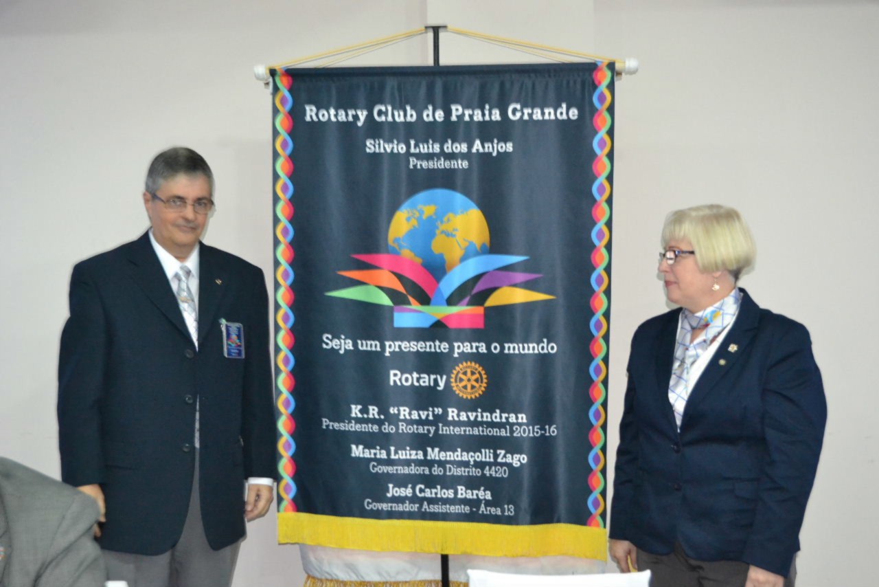 O Rotary Club de Praia Grande recebeu o casal governador 2015-2016, Maria Luiza Mendaçolli Zago e Cláudio, que prestigiou a reunião festiva de Transmissão e Posse do clube, que tem como casal presidente presente Silvio Luis dos Anjos e Maria Adília.