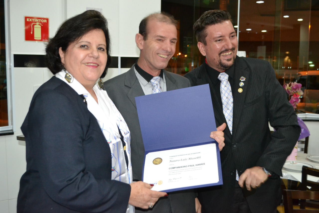 A posse da nova companheira Arliette Maria foi o destaque da noite festiva, ela que já participava ativamente das ações do clube como esposa do companheiro José Morithi, agora seu padrinho em Rotary. O titulo Paul Harris foi entregue ao companheiro Nauro Luiz Masotti, que recebeu a comenda das mãos da governadora.