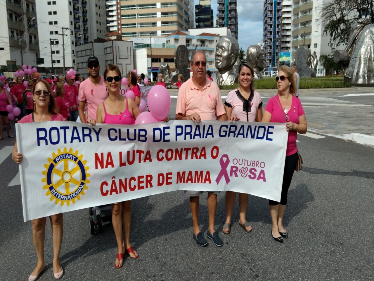 O Rotary Club de Praia Grande participou neste último sábado dia 28 da caminhada do OUTUBRO ROSA. Participaram do evento juntamente com o Rotary a ONG Estrela da Mama, o Lions Clube, o Elos Clube, o CAMP, a OAB e a associação de motociclistas anjos do asfalto. A passeata percorreu as principais ruas do bairro do boqueirão alertando a população sobre as medidas que podem prevenir uma das doenças que mais atingem as mulheres em nosso país na atualidade, o câncer de mama.