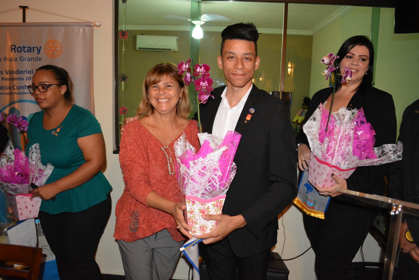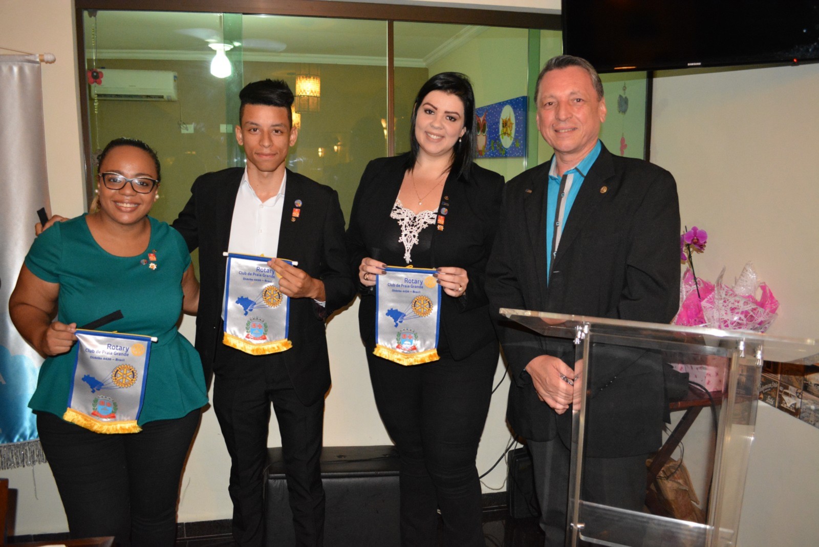 Na Reunião Festiva do Rotary Club de Praia Grande, recebemos mais três novos sócios Jean Carlos Kemily e Bruna.