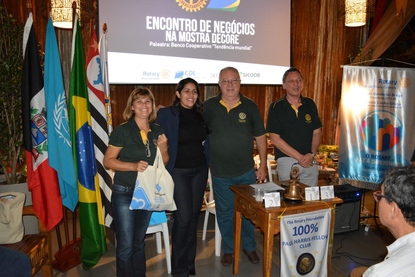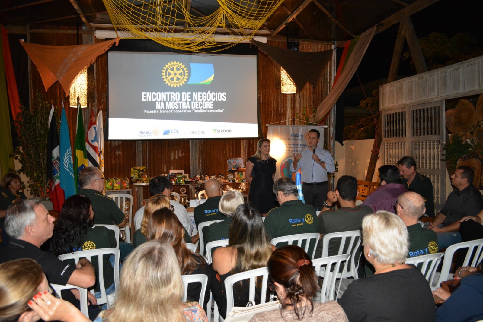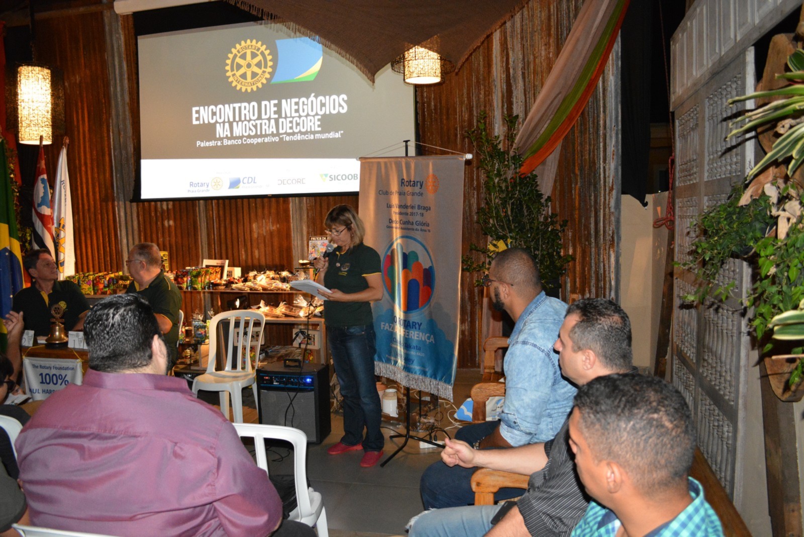 Reunião do Rotary Club de Praia, Encontro de Negócios Realizado na Mostra Decore promovido pela. Câmera de Dirigentes Lojistas de Praia Grande ? SP, com a palestra do Sicoob Metropolitana.