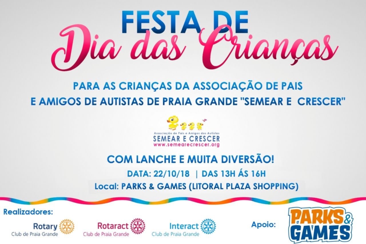 No dia 22 de outubro 2018; Rotary Club de Praia Grande realizou mais um evento com Semear e Crescer, festa de dia das crianças.