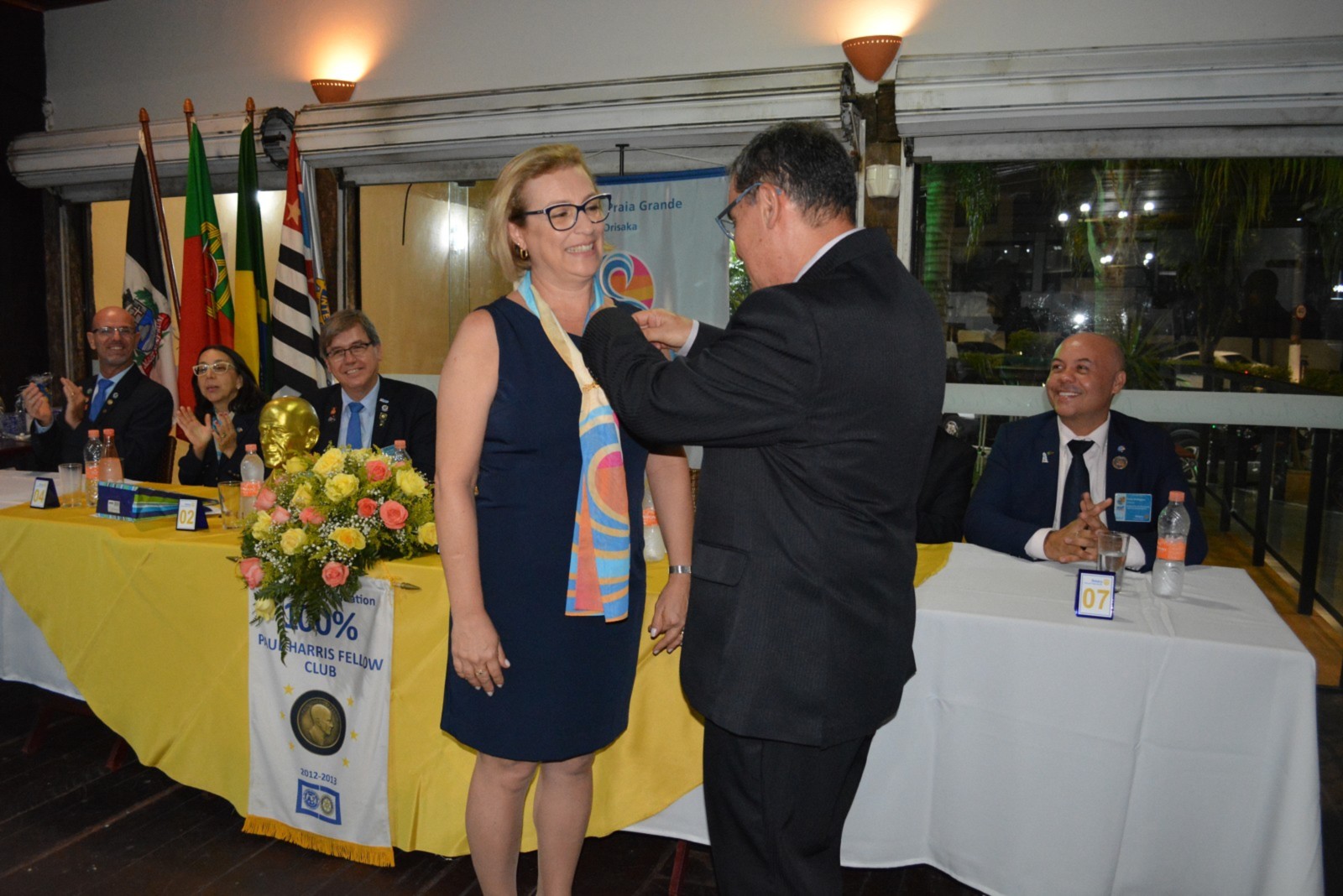 O Rotary Club de Praia Grande recebeu no último dia 22 de janeiro a visita oficial do Governador do distrito 4420, Carlos Eduardo Estevam Torci. O o governador chegou a cidade às 15 horas sendo recepcionado pelos companheiros na praça onde será construído o futuro marco rotário. Naquele local ele e o Presidente Morithi descerraram a placa inaugural da pedra fundamental do futuro obelisco. O Governador visitou ainda dois projetos permanentes do clube: a brinquedoteca do Hospital Irmã Dulce e a sede do Projeto semear e crescer que atende a mais de uma centena de crianças autistas. No Final da tarde realizou uma assembleia com os companheiros e a seguir foi recepcionado em uma reunião festiva que contou com a presença de companheiros dos Rotary Clubs São Paulo Parque Continental, Praia Grande Forte Itaipu, Guarujá Vicente de Carvalho e São Vicente. Na oportunidade o Rotary Club de Praia Grande de posse a quatro novos companheiros: Márcia Regina de Andrade e Silva, Vera Lúcia Lopes, Rita de Cássia da Silva e Rodrigo Mendes Gasparino