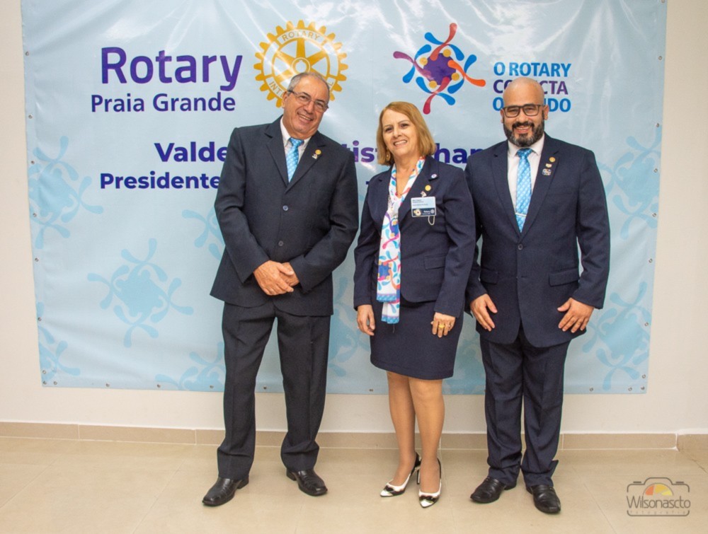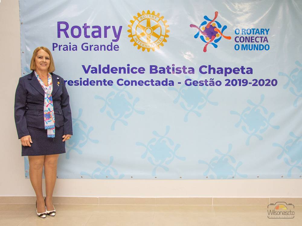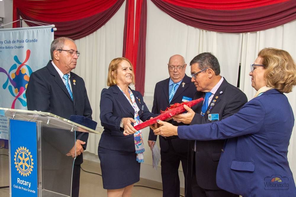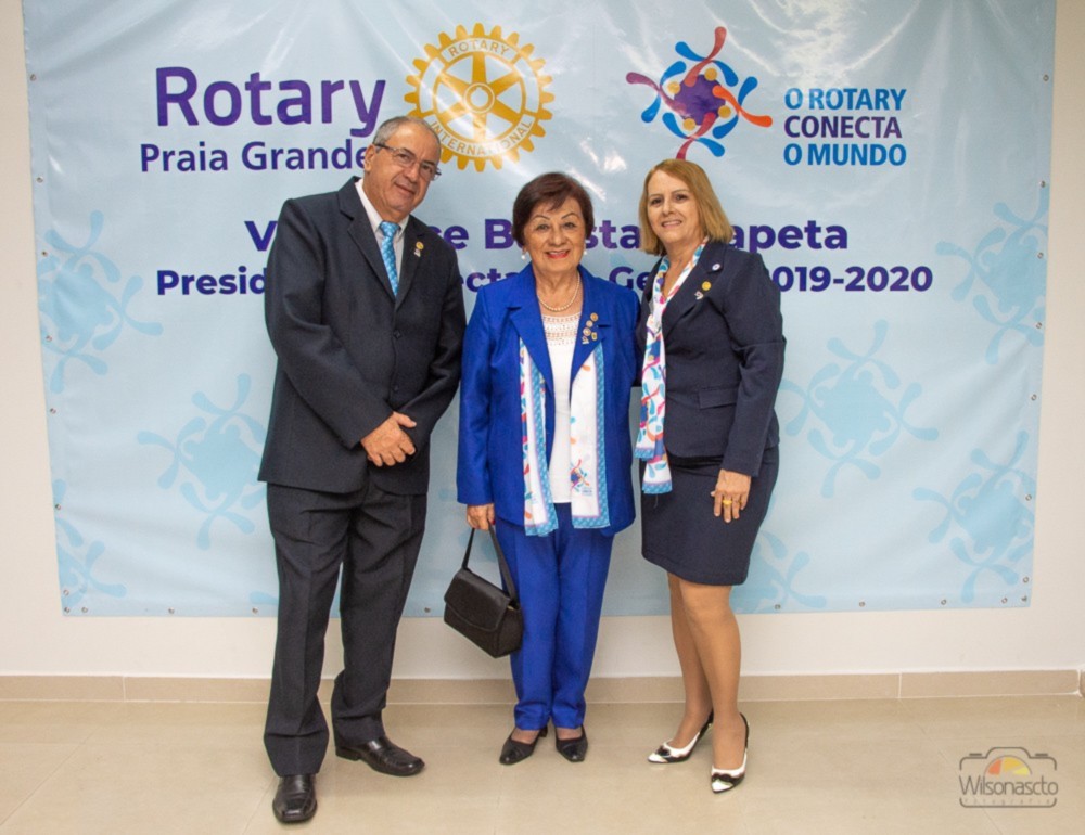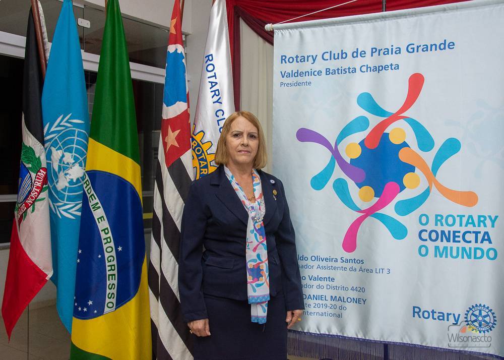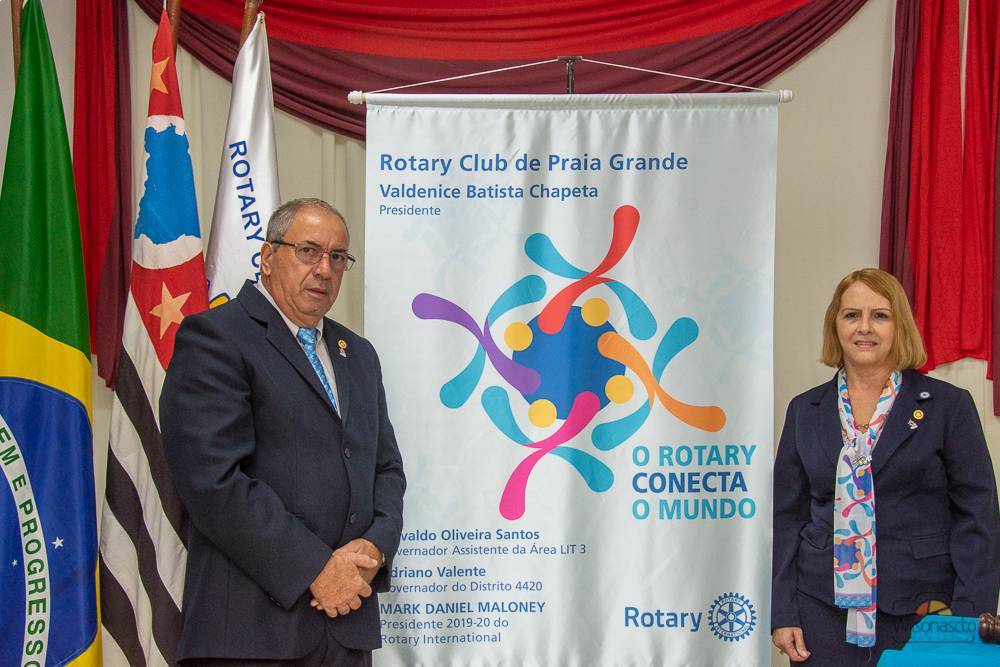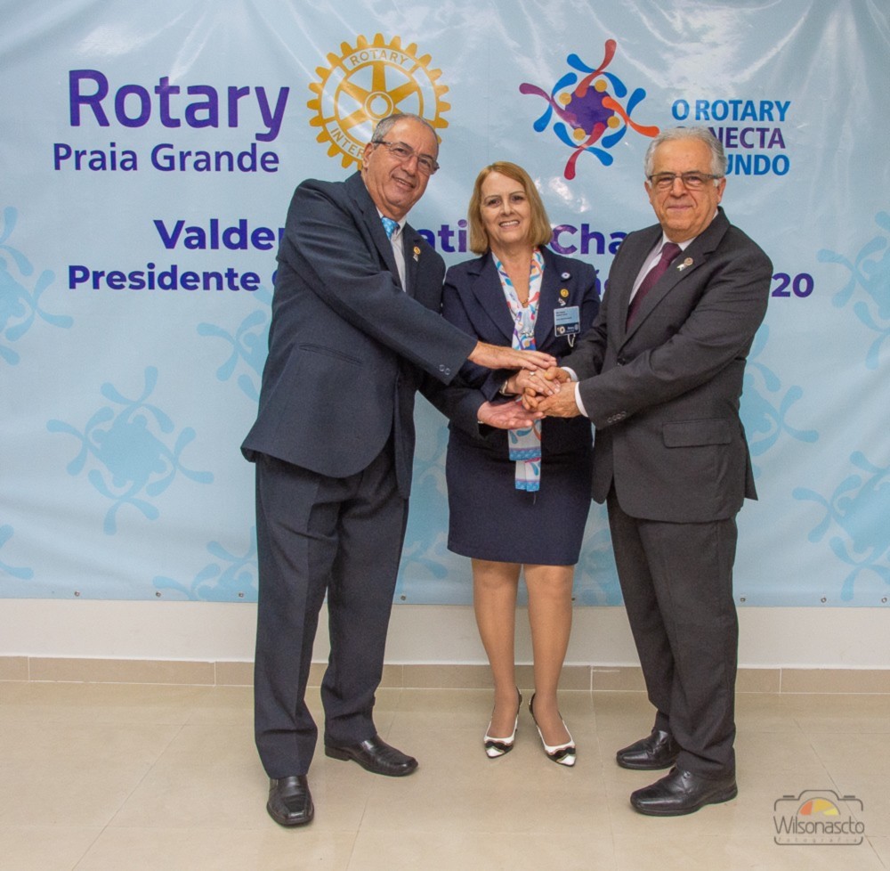No último dia 15 de junho o Rotary Club de Praia Grande realizou a cerimônia de transmissão e posse do seu novo Conselho Diretor eleito para o ano rotário 2019/2020. Pela segunda vez em sua história o mais antigo clube rotário da cidade será comandado por uma mulher: Valdenice Batista Chapeta. O evento aconteceu na Colônia de Férias dos Metalúrgicos na Vila Mirim e contou com a presença de autoridades rotárias de toda região com destaque para a presença do Governador 2001/2002 Samir Nakhle Khoury que na oportunidade representou o colégio de governadores do distrito 4420. Cerca de 100 pessoas entre convidados e rotarianos prestigiaram a posse da nova presidente.