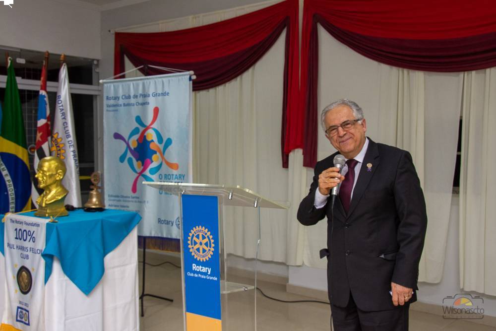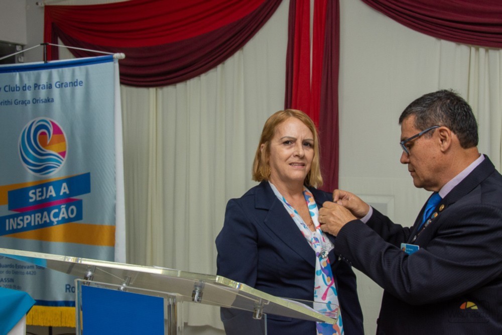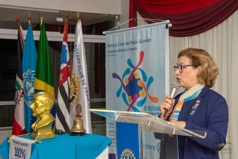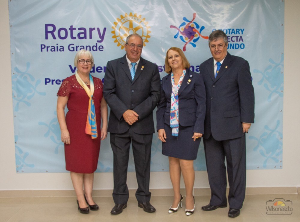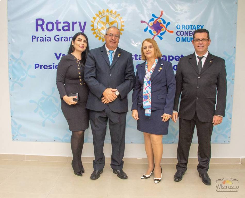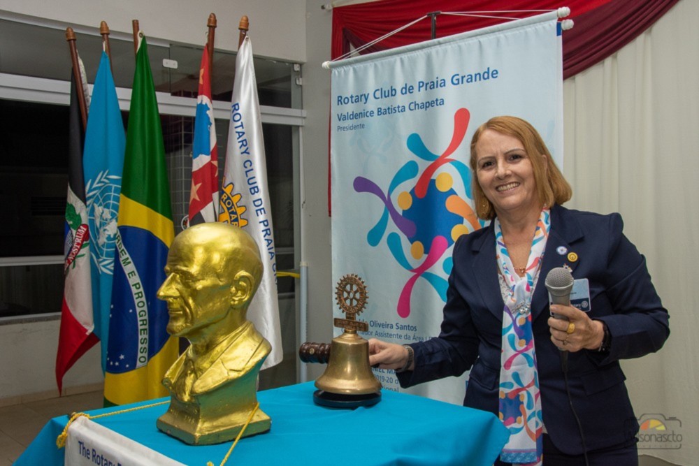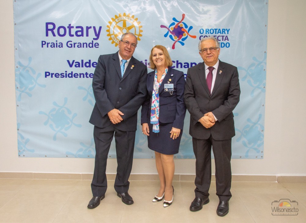 No último dia 15 de junho o Rotary Club de Praia Grande realizou a cerimônia de transmissão e posse do seu novo Conselho Diretor eleito para o ano rotário 2019/2020. Pela segunda vez em sua história o mais antigo clube rotário da cidade será comandado por uma mulher: Valdenice Batista Chapeta. O evento aconteceu na Colônia de Férias dos Metalúrgicos na Vila Mirim e contou com a presença de autoridades rotárias de toda região com destaque para a presença do Governador 2001/2002 Samir Nakhle Khoury que na oportunidade representou o colégio de governadores do distrito 4420. Cerca de 100 pessoas entre convidados e rotarianos prestigiaram a posse da nova presidente.