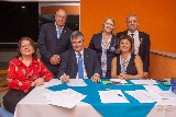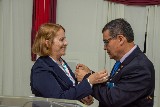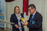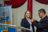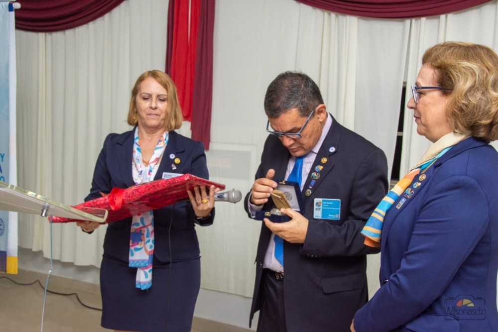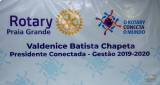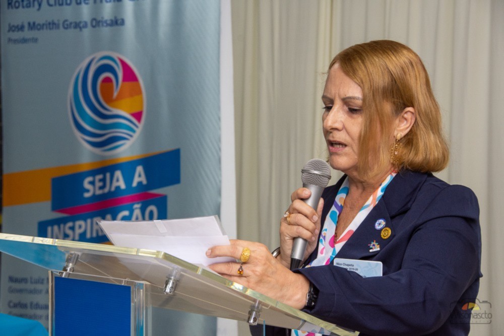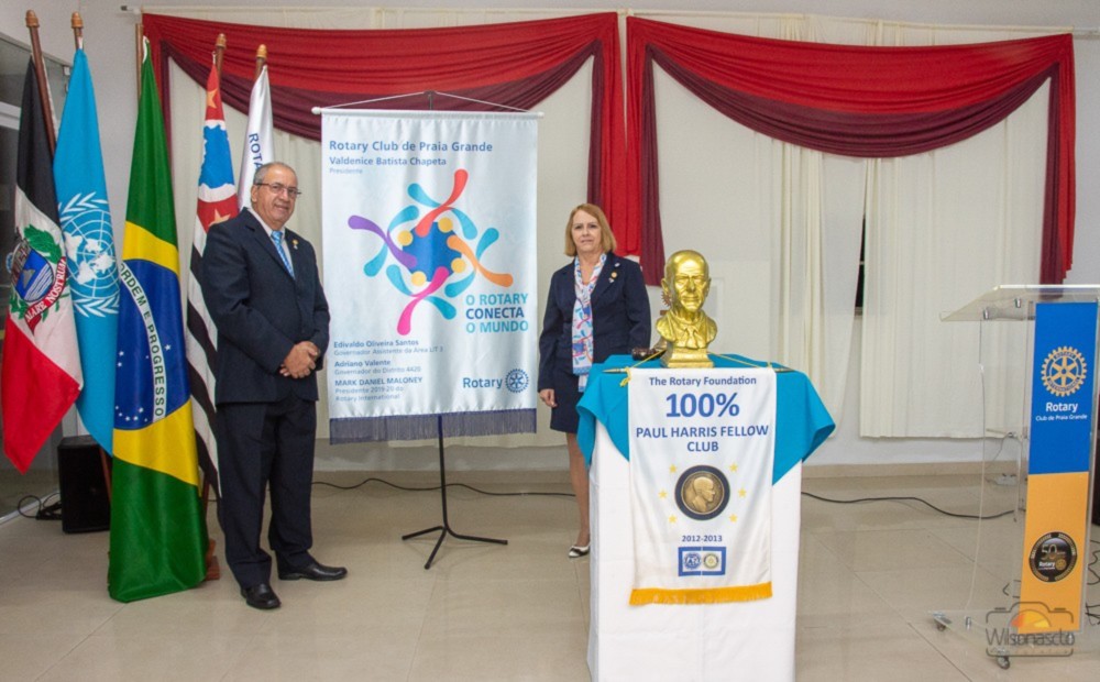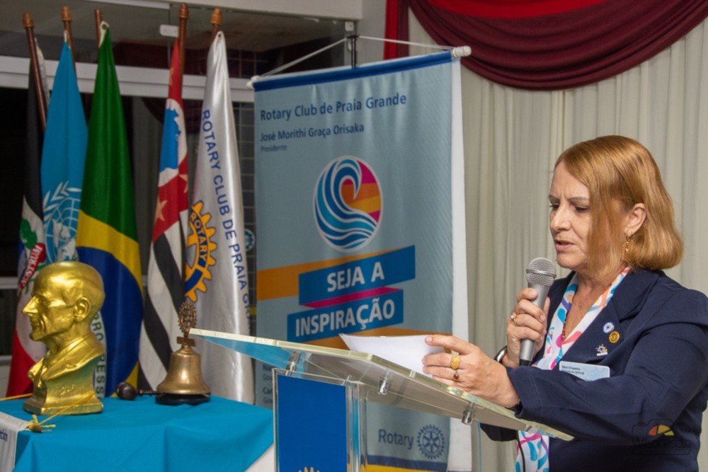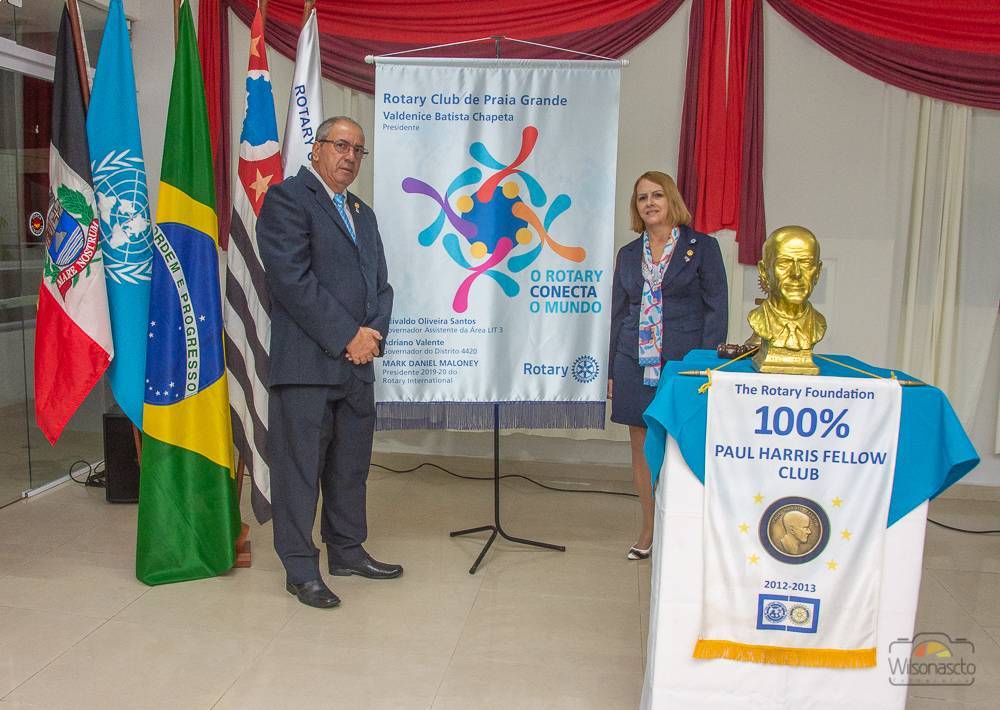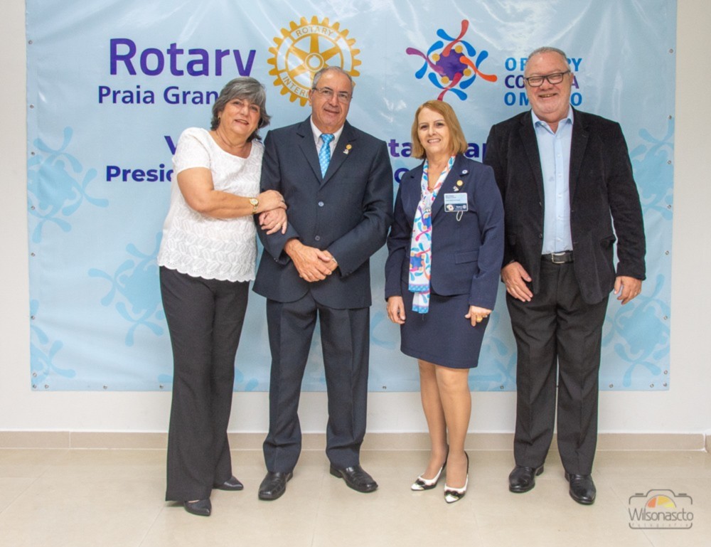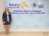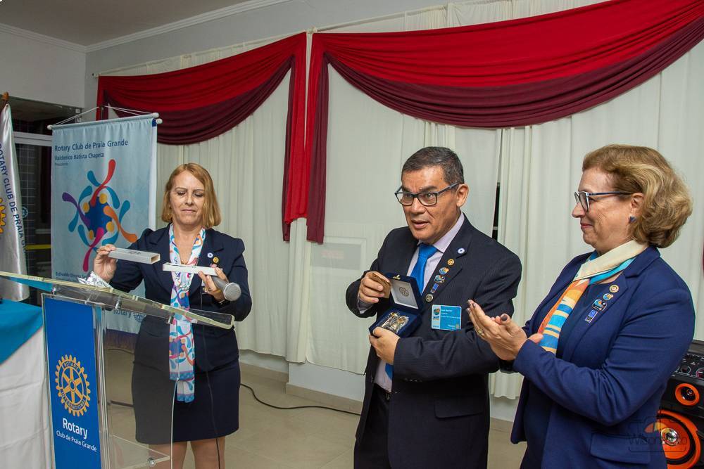No último dia 15 de junho o Rotary Club de Praia Grande realizou a cerimônia de transmissão e posse do seu novo Conselho Diretor eleito para o ano rotário 2019/2020. Pela segunda vez em sua história o mais antigo clube rotário da cidade será comandado por uma mulher: Valdenice Batista Chapeta. O evento aconteceu na Colônia de Férias dos Metalúrgicos na Vila Mirim e contou com a presença de autoridades rotárias de toda região com destaque para a presença do Governador 2001/2002 Samir Nakhle Khoury que na oportunidade representou o colégio de governadores do distrito 4420. Cerca de 100 pessoas entre convidados e rotarianos prestigiaram a posse da nova presidente.